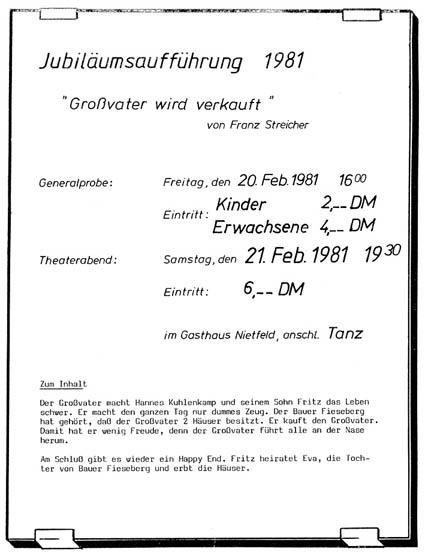 Dies war das Preisschild für die Jubiläumsveranstaltung "10 Jahre Theatergemeinschaft Mainsche" aus dem Jahre 1981